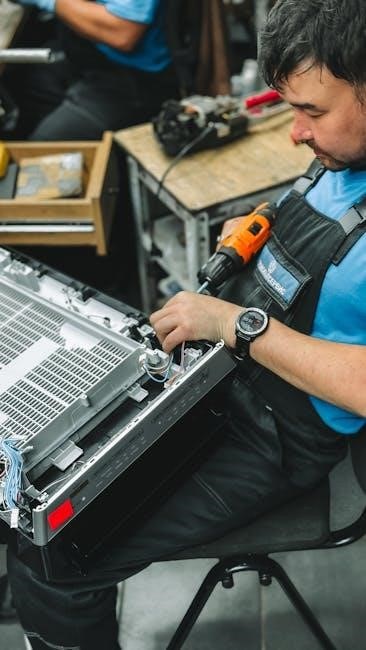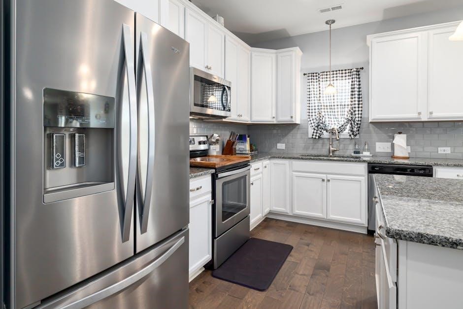 Use a level to check the refrigerator’s stability. Adjust the leveling feet, located at the bottom corners, until the appliance is perfectly balanced; Proper leveling minimizes noise and ensures the doors close securely.